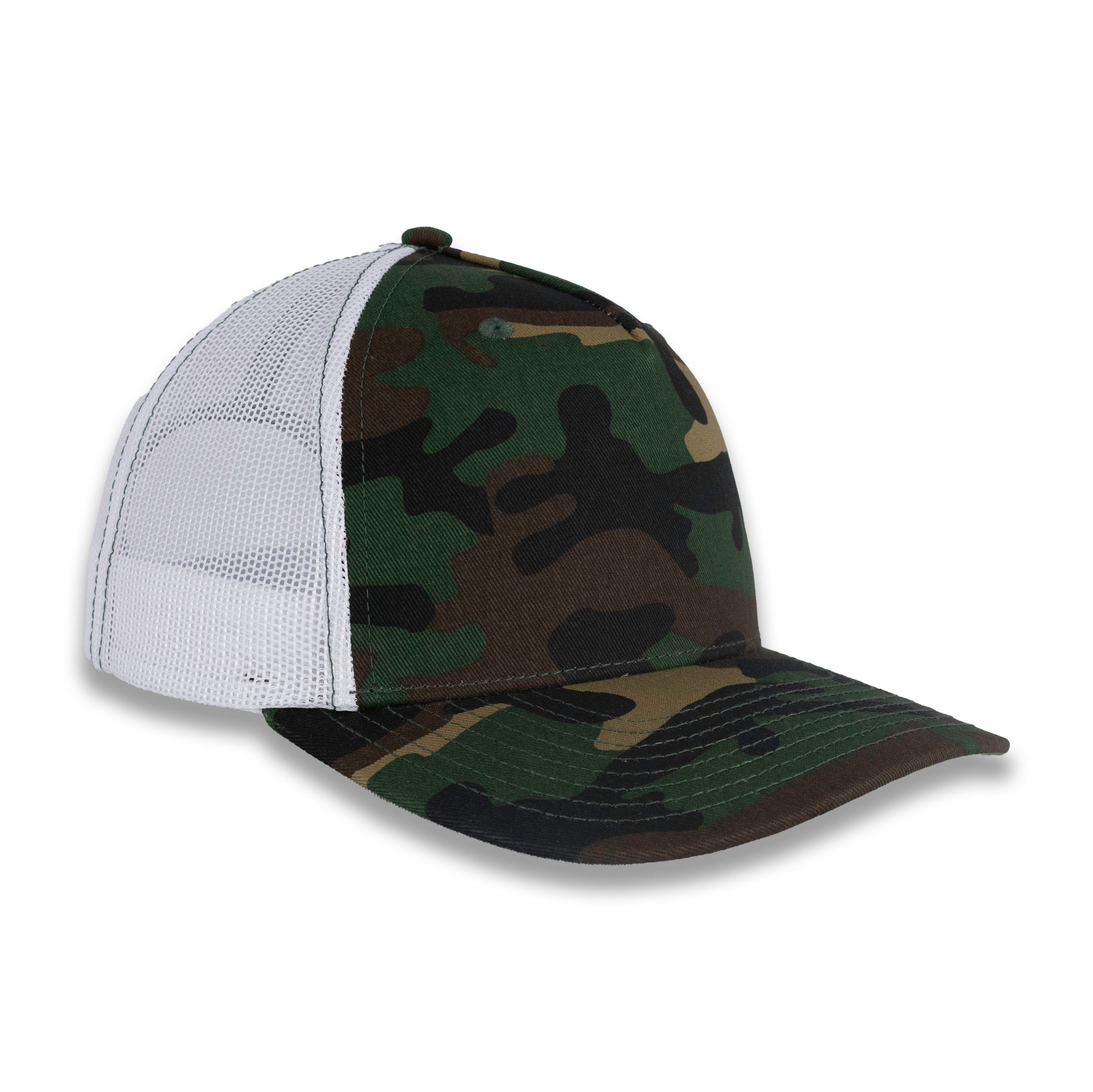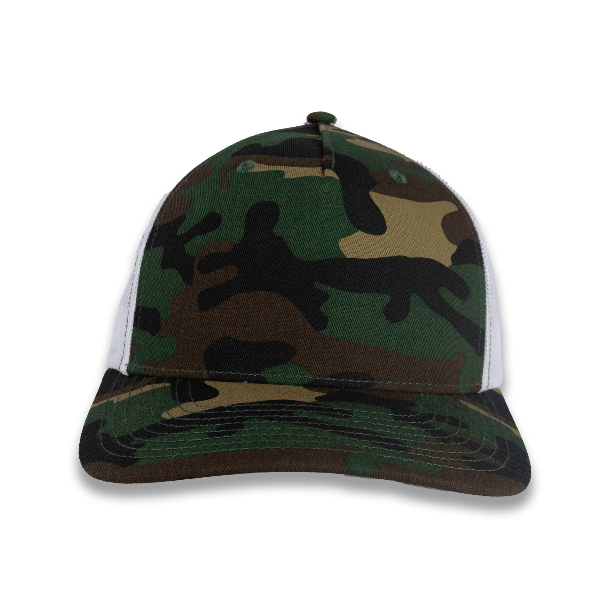 Richardson Five Panel Trucker - Military - Green Camo/White